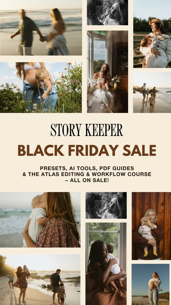 Get 25% OFF all Story Keeper Presets, AI Lumi Toolkit, Editing Brushes, and Client PDF Guides with code SOCIALSALE.
